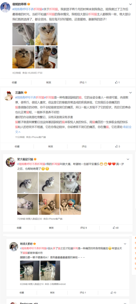 4月15日,周扬青发文呼吁不要养折耳猫,引起爱猫人士的共鸣。